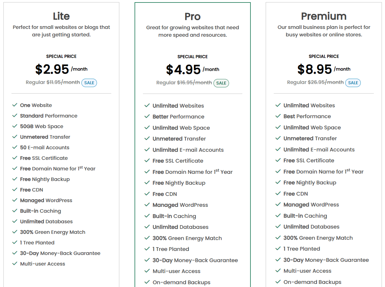 GreenGeeks Prices, Hosting Plans:
